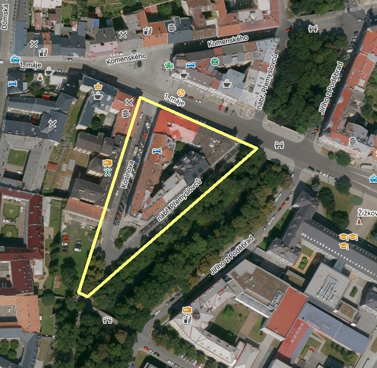 - Zelený ostrov a výsadba nových stromů: Stávající zeleň na nároží bude rozšířena a doplněna o nové stromy. V prostoru náměstí budou ke stávajícím jírovcům vysazeny dva nové stromy.
